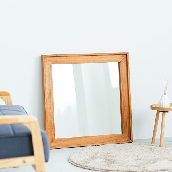 L型フレームウォールミラー(680×680) (ハニーブラウン)