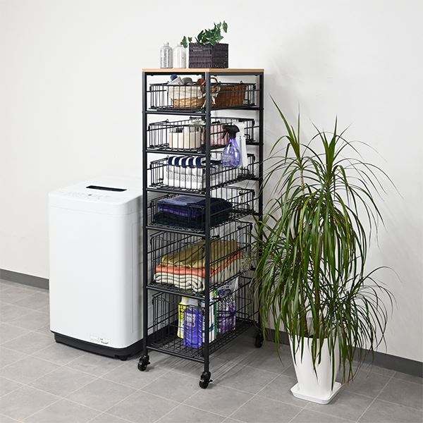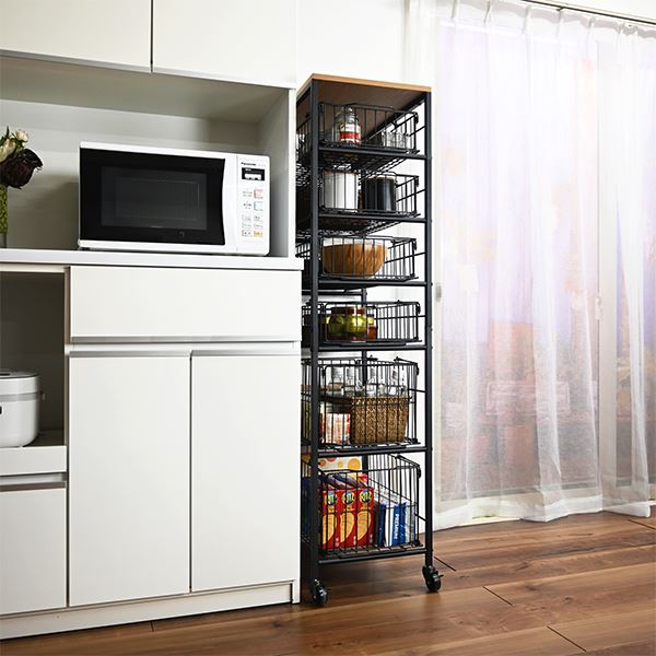 大容量 収納ラック バスケット 6段 キャスター付き スリム キッチン収納 収納ワゴン 組立式