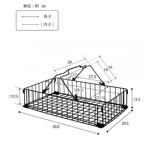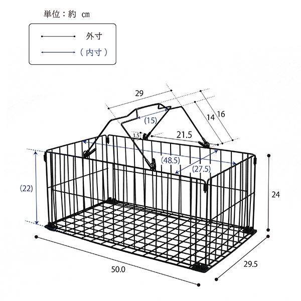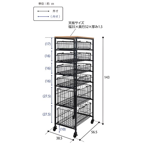 ●耐荷重:天板10kg,バスケット(大)1個10kg,バスケット(小)1個10kg,全体耐荷重40kg