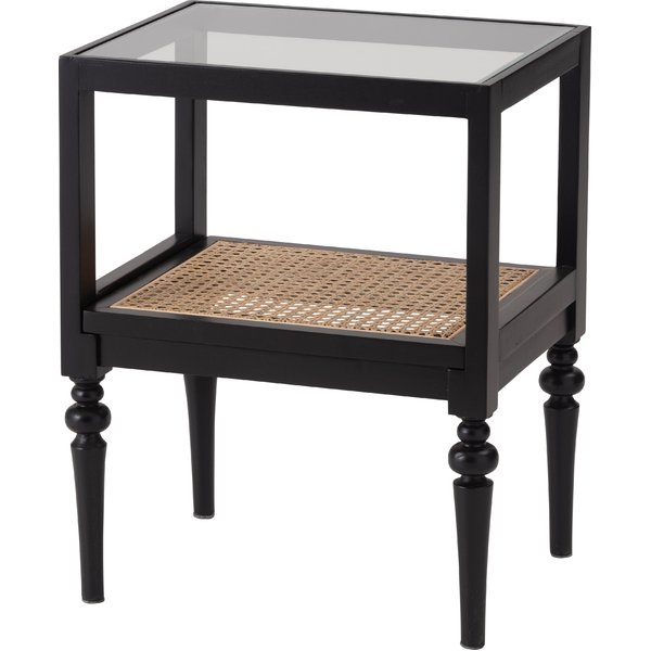 天然木とラタンを使用したナチュラルなイメージのデザインながら、ターンドレッグ(ろくろ脚)を採用することで、クラシカルな雰囲気も感じられるオープンシェルフ&サイドテーブル。ガラス天板で抜け感もあり、使いやすいサイズ感も魅力です。