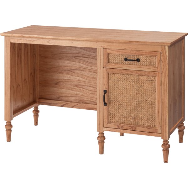ブラックアイアンがアクセントになっている使いやすいシンプルなデスク。ぬくもりのある天然素材をそのまま活かし、他のインテリアと組み合わせやすいデザインに仕上げました。用途によって高さを変えられる可動式棚や、大容量収納の引き出しがあり、デスクの上をスッキリ片付けることができます。