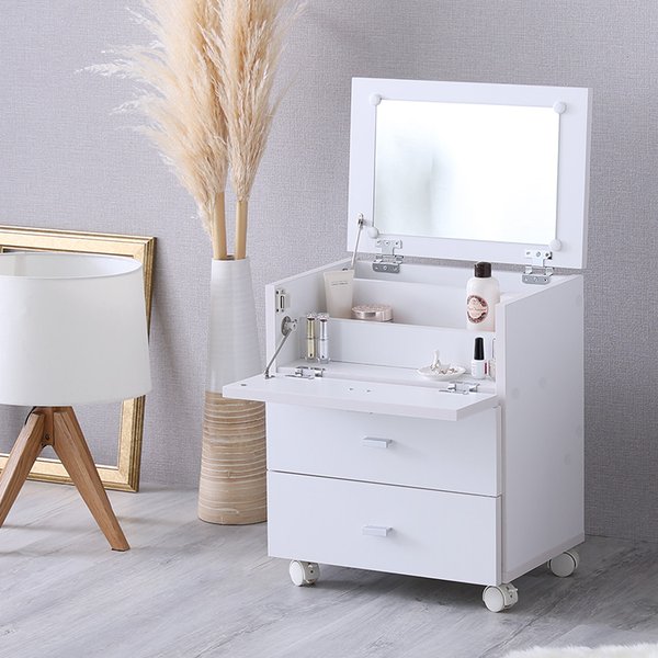高さのあるスプレー類もしまえる深めの引き出しや、小物をしまうのに便利な2杯の引き出しつき。