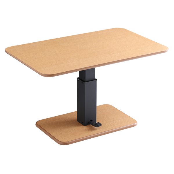 ペダルで調節可能な昇降テーブル。天板は幅119.5cmと広々ご使用いただけます!リビングテーブルとしても使え、来客時にも対応できます。