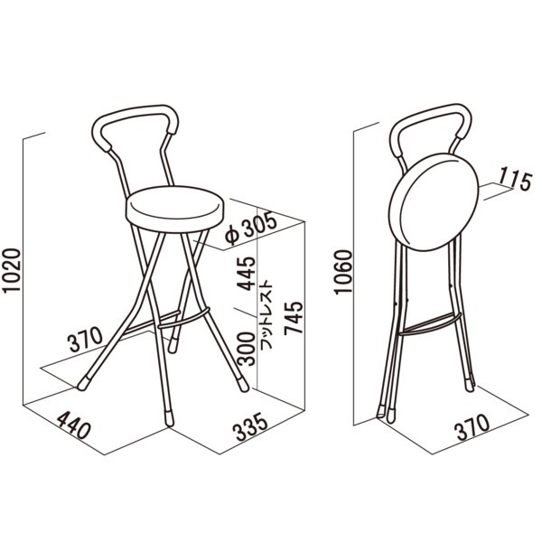 天板高さ1m程度のハイカウンターテーブルにマッチするシート高さ74cmのフォールディングチェア。