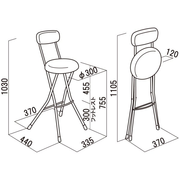 ■折りたたみ時:W370×D120×H1105
