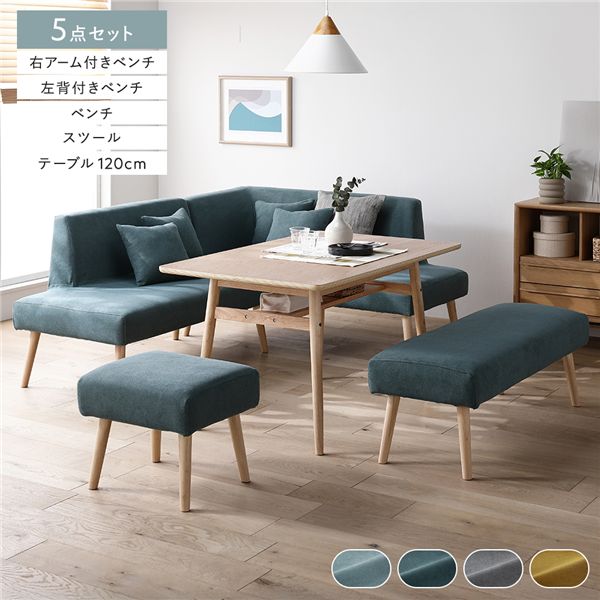 北欧 ソファ ダイニング 5点セット 右カウチスタイル テーブル幅120cm+左背付きベンチ+右アーム付ベンチ+ベンチ+ シー