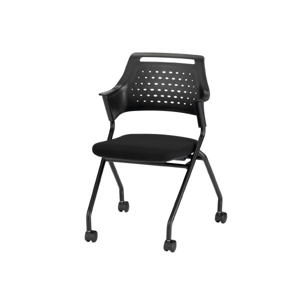 A3サイズ以上のメモ台が左右で選べる平行スタッキングチェア/布張り/ブラック。平行スタッキング(ネスティング)が可能なので、収納スペースを取らないため省スペースオフィスにおすすめです。別売りのメモ台は右側(208‐409)と左側(208‐410)からお選びいただけます。