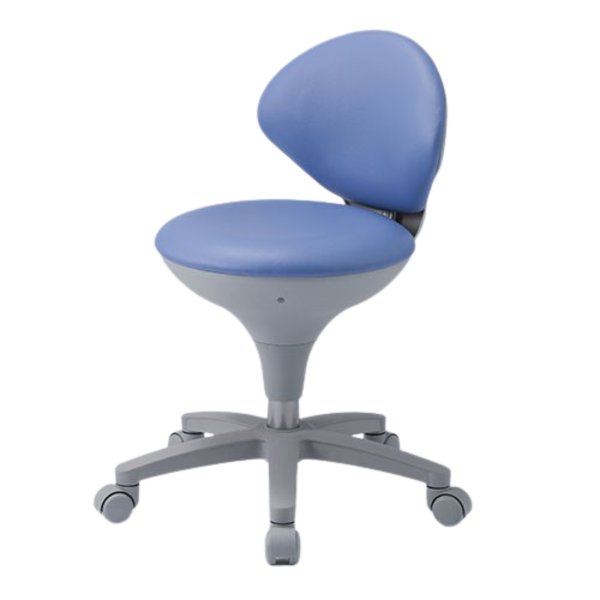 丸みのある形状が特徴的なコンパクトで使いやすいワーキングチェア「WS021」/ブルー。座裏にある座面高調節のレバーも飛び出ることなくすっきりとしたデザインです。座面昇降はガス圧昇降なので調整もスムーズです。