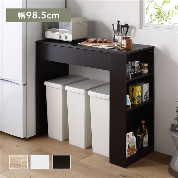 ゴミ箱上 収納カウンター 引き出し付 棚付 お手入れ簡単 キッチン収納 収納家具 キッチン 台所 組立品 代引不可