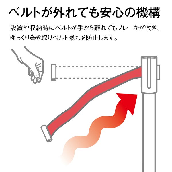 ■材質ベース・ポール:ステンレスに粉体塗装、ベルト:ポリエステル(48mm巾)