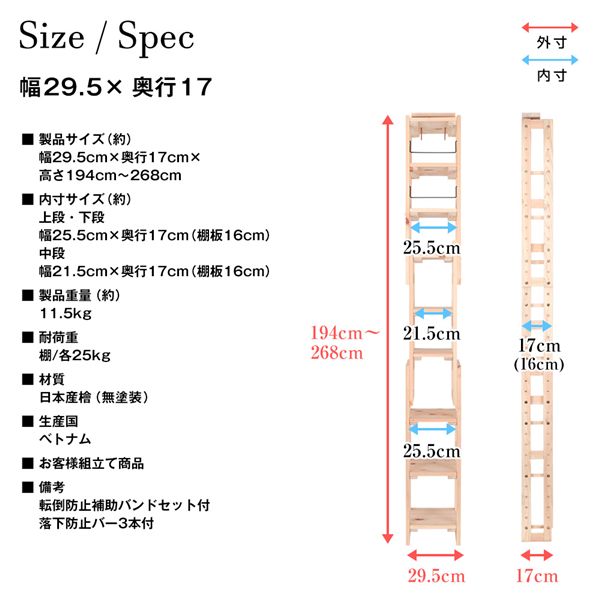 【外寸】幅29.5×奥行17×高さ194-268cm