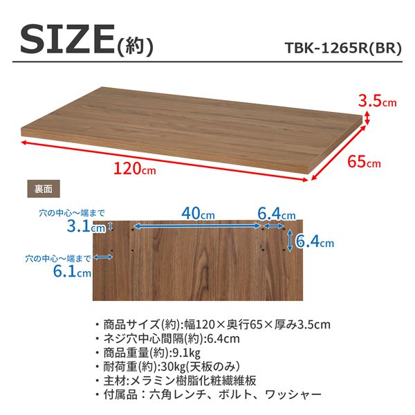テーブル用脚を取り付けてテーブルやデスクとして使用できる、テーブル天板です。