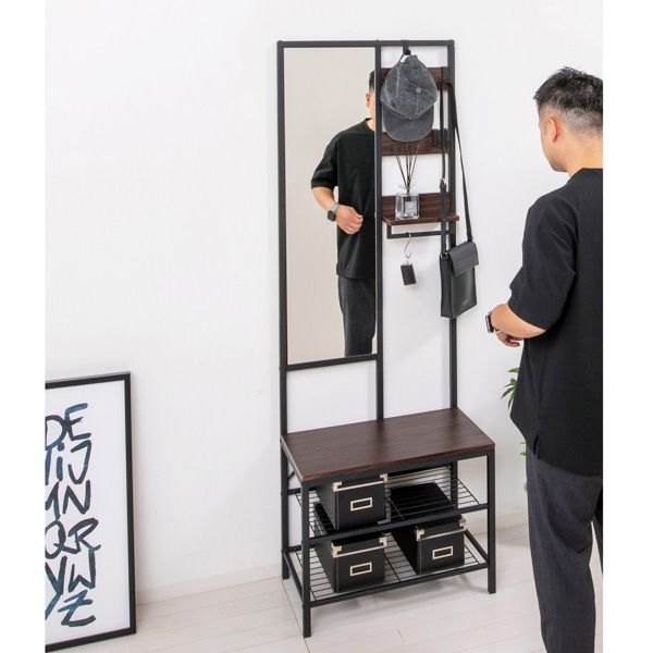 多機能ハンガーラック ミラー付き 組立式 代引不可