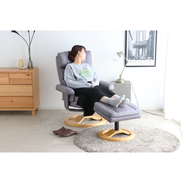 理想のくつろぎ時間を叶えてくれるパーソナルチェアです。PVCの柔らかな張地と程よい弾力性が、長時間の使用もサポートしてくれます。フットレストの場所を自分で調整し、楽な姿勢で使えます。なだらかな傾斜も全身の力を抜いて使えるポイントです。リビングの端や自分のお部屋など、ベストポジションでのリラックスタイムが満喫できます。