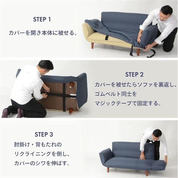 脱着が簡単な2人掛けカウチソファ専用カバー。洗濯機で洗えるのでいつも清潔な状態を保てます。