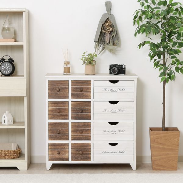 ホワイトウォッシュで仕上げたアンティークフレンチを思わせるおしゃれなデザイン。ブラウンカラーもアクセントに。 引き出し内寸28×25.5×12cmのボックスは深さもあるので、用途に応じてたっぷり収納できます。 引き出し内寸13.5×25.5×12cmのボックスにはハンドタオルや靴下などサイズの小さな小物をスッキリ収納 幅68×奥行32.5cmの天板は作業スペースやディスプレイスペースとしても使えます。 キッチンやバスルーム、子供部屋など様々な場所でお使いいただけます。 湿気に強く、防カビ・防虫性があるので日本の気候にもピッタリ!