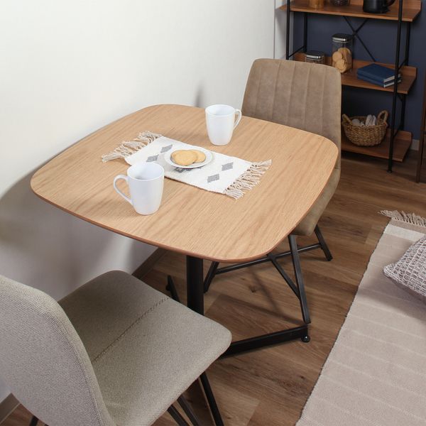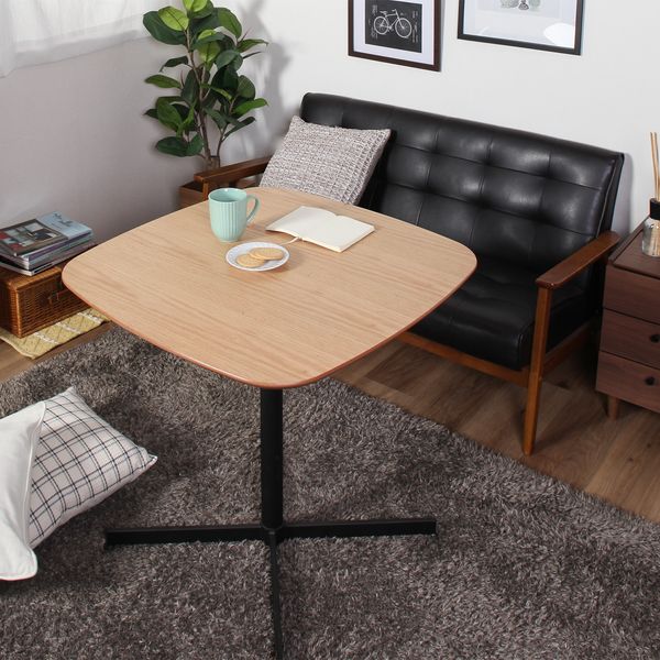 木目が美しい天然木と全体を引き締めるスチールがおしゃれなカフェ空間をつくります。 天然木によく合うマットな質感のブラックフレーム。1本脚なのでスッキリした印象に。 幅75×奥行75cmでお食事やお仕事などの作業台にピッタリ。 脚にはサビに強いエポキシ樹脂塗装を施し、長く愛用していただける工夫が詰まっています。 天板にはオーク突板を使用しており、木目の美しい高級感あるデザインです。 床の凹凸などによるテーブルのぐらつきを抑えるアジャスターがついています。ネジ式なので、手で回すだけで簡単に調節できます。