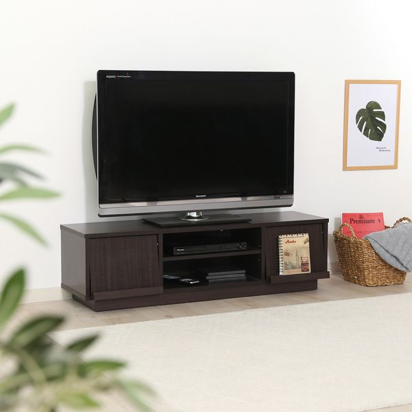 シンプルなデザインで、どんなお部屋にも優しく馴染みます。 幅119×奥行38cmで、インテリアも楽しみながら広々と使えるサイズ感。天板耐荷重は20kgです。 幅48.5×奥行31×高さ24.5cmの収納スペースで、AV機器やゲーム機などの収納に便利。棚板は可動式で、高さの調整も可能です。 全ての収納スペースにコード穴がついており、配線を通すことができます。 お気に入りのDVDやCDなどをディスプレイできます。フラップ部分を開くと、DVDや小物などの収納スペース。 外からは見えない隠しキャスター仕様で、見た目はスッキリなままラクラク移動ができます。