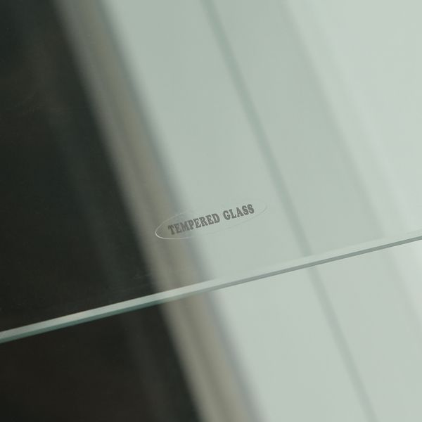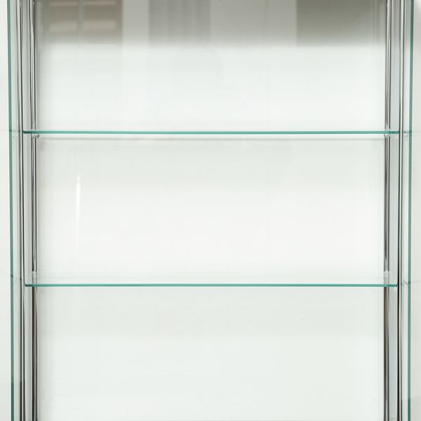 ■構造部材(天板/地板):プリント紙化粧繊維板 ■構造部材(柱):金属(鋼) ■構造部材(扉板/背板/側板/棚板):強化ガラス ■表面加工(柱):めっき(クロム)