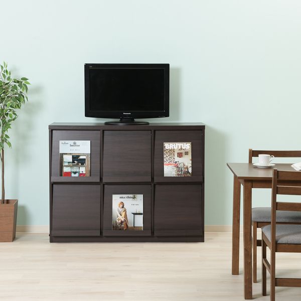 分割された収納スペースと魅せるフラップ扉で、お気に入りの雑誌などを飾ってオリジナルのインテリアとして楽しめます。 6つに分割された大容量の収納スペース。収納するアイテムごとに区分けできるので、これ一つでお部屋がすっきり片付きます。 フラップ扉にはお気に入りの本や雑誌などを飾り、特別な空間に。 幅119×奥行39cmの広い天板を利用して、お気に入りの小物をディスプレイしたり、テレビを置いてもOK! フラップ扉は上部に開くので、ものの出し入れもラクラクです。 扉を開けたままにして、オープンラックとしてもお使いいただけます。