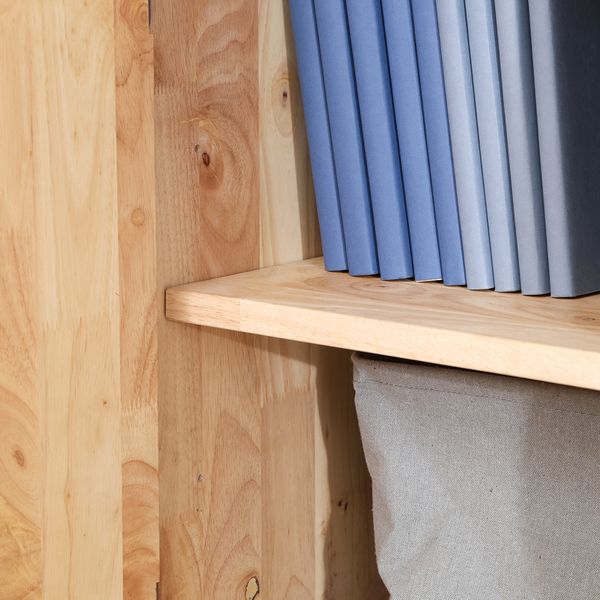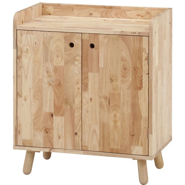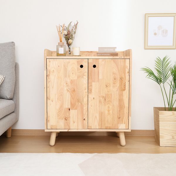 天然木の木目や節といった個性をそのまま活かしたデザインです。横板は丸みを帯びており、優しい印象を与えます。 見た目もスッキリな扉収納なので、書類や見せたくないものをドサッと収納できます。 棚板ピッチは90mmで高さを3段階で調節できる可動式。収納したい物に合わせて高さを決めることができます。 高さ80cmと子どもでも使いやすく、お部屋に置いても圧迫感を感じにくい大きさです。 棚下13.5cmあるので、柄の長い掃除用品やロボット掃除機も通れます。ホコリが溜まりやすい部分をキレイに保つことができます。 別売りのトップラックと合わせて収納を拡張できます。
