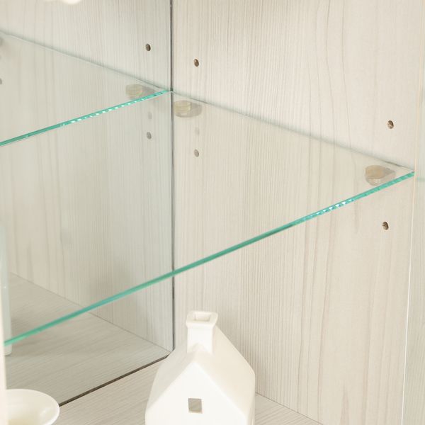 ■プリント紙化粧繊維板 ■棚板/扉部:強化ガラス ■背面ミラー:ガラス ■脚部:天然木(ラバーウッド)