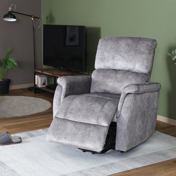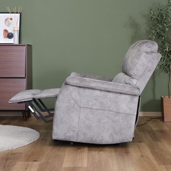 安心感のある肉厚クッションと落ち着いた色合いが、お部屋に重厚感をプラスします。 座面後部が20秒で45度までせり上がり、ラクに立ち上がることができます。ゆっくりとした動作で、安全に立ち上がりをサポートしてくれます。 リクライニングはフットレストも連動し、リモコンで簡単に操作できます。 座面にはSバネとポケットコイルを使用しており、弾力があり長時間座っていても疲れにくく快適です。 アームは幅があり、ゆったり身体を預けることができます。 側面には雑誌やリモコンなどを収納できる便利なポケットが付いています。