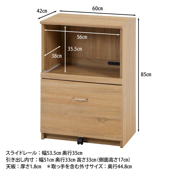 レンジや炊飯器、トースターなどを効率よくまとめて収納。スライド棚やコンセント付きで、毎日の調理をもっとスムーズにサポートします。