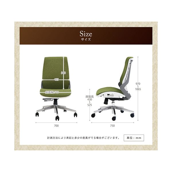 材質:背座フレーム:ナイロン、生地:ポリエステル、座面:モールドウレタン、脚部:アルミナム、キャスター:ポリウレタン
