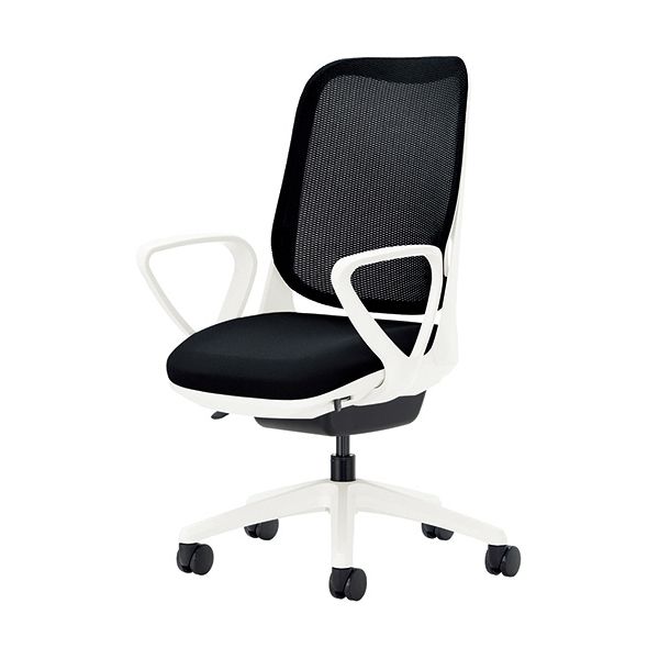 ●サークルアームで背座色ブラック(ホワイト脚・フレームはホワイト)のオフィスチェア「ライド」。
