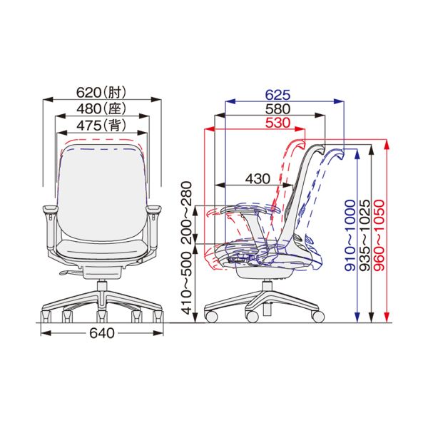 寸法:W640×D580×H935~1025mm