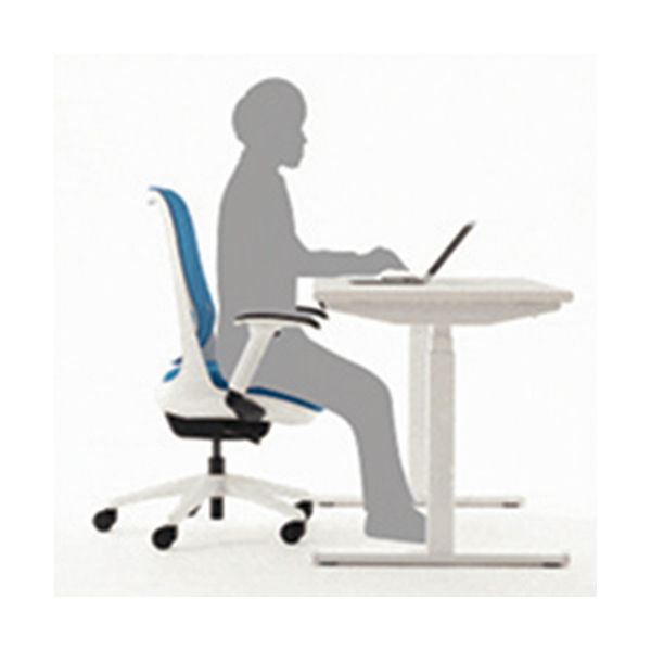 ●思いのままに前後に「負担の少ない正しい姿勢」をサポート!前傾位置:シート部が前方5°まで傾き、机上作業におすすめ。水平位置:一般的チェアーの標準位置。資料の閲覧やタブレットの操作に。後傾位置:シート部が後方5°まで傾き、リラックスできる体勢に。