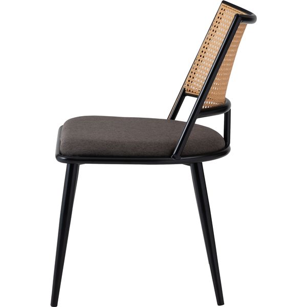 ●ポリエチレン素材のラタン調デザインを施した背面と、ファブリック素材の座面の組み合わせが新鮮なチェア。