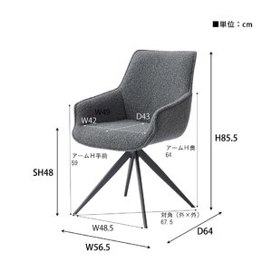 回転アームチェア (約W56.5 D64 H85.5 H48cm) 組立式