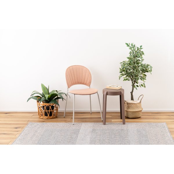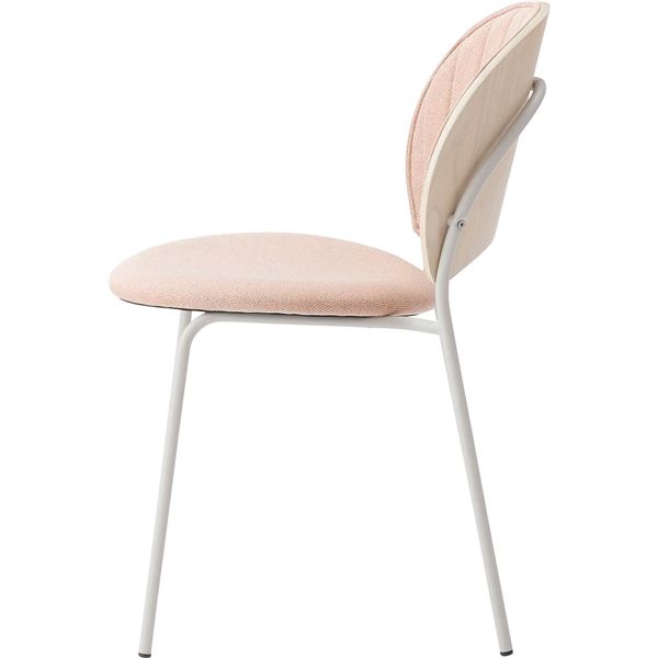 柔らかい曲線と優しいカラーリング まるで貝殻のようなデザインが目を引くチェア。スタイリッシュなライトグレー色の脚とペールカラーの生地の組み合わせが優しい雰囲気を演出します。