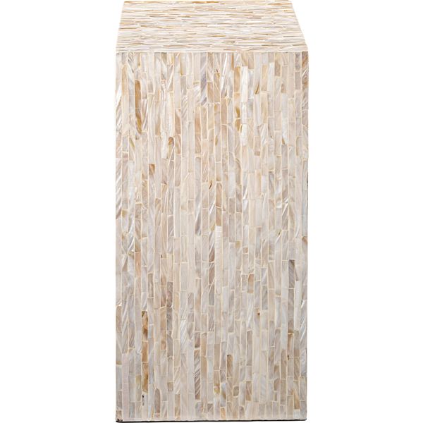 透明感と独特な光沢が演出する、マザーオブパールシェルインテリアシリーズ マザーオブパールはその名の通り真珠を育む貝で真珠のような虹色に輝く光沢が特徴です。古くから時計の文字盤や楽器、雑貨の装飾に使われてきました。一点一点丁寧に手貼りされ、シンプルで上品な印象に仕上げることで現代のインテリアにマッチするようデザインしました。