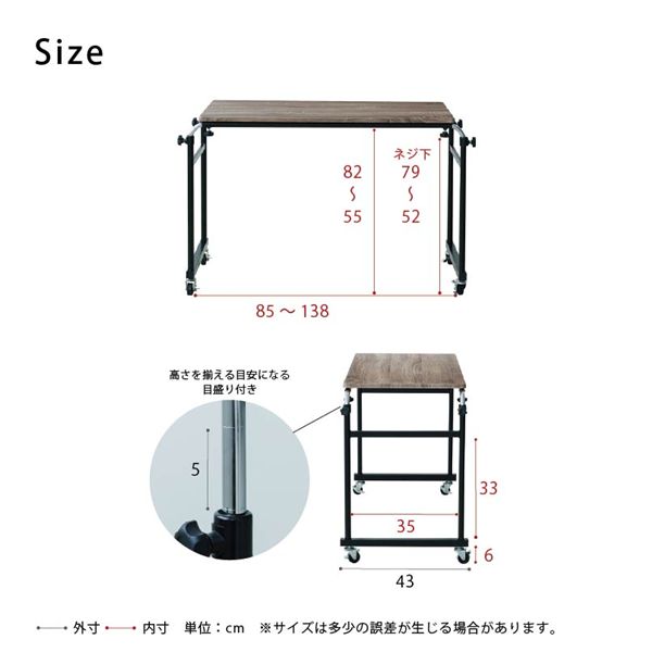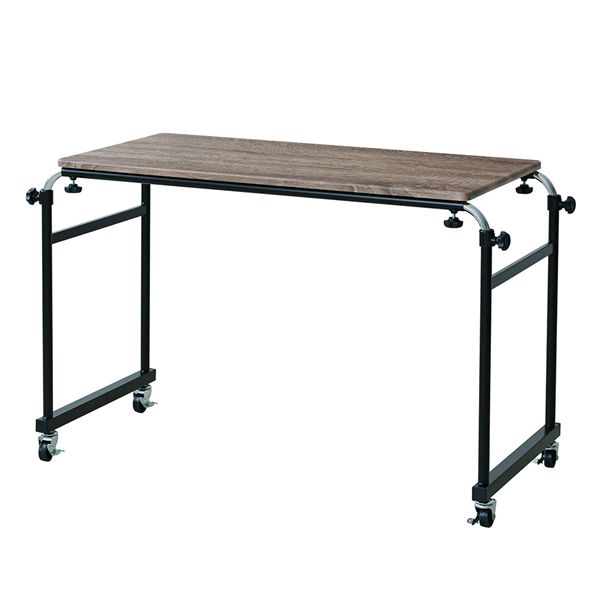 2個セット アジャストマルチテーブル ルーモ(グレーウッド) ベッドテーブル PCテーブル パソコンテーブル 机 デスク 昇降式 キャスター 高さ調節 伸縮式 木目 介護 在宅ワーク ヴィンテージ モダン 韓国インテリア 一人暮らし 業務用 NK-511 組立品