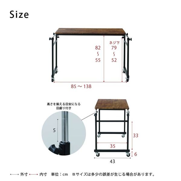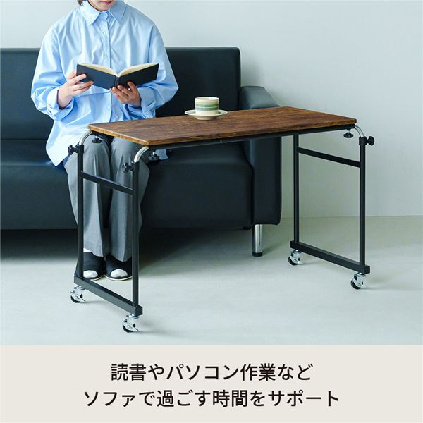 2個セット アジャストマルチテーブル ルーモ(ウッド) ベッドテーブル PCテーブル パソコンテーブル 机 デスク 昇降式 キャスター 高さ調節 伸縮式 木目 介護 在宅ワーク ヴィンテージ モダン 韓国インテリア 一人暮らし 業務用 NK-511 組立品