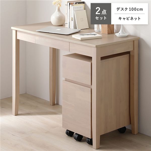 天然木 デスクシリーズ 2点セット デスク 100cm幅 + キャビネット ラテ デスクセット 学習机 引出し付き
