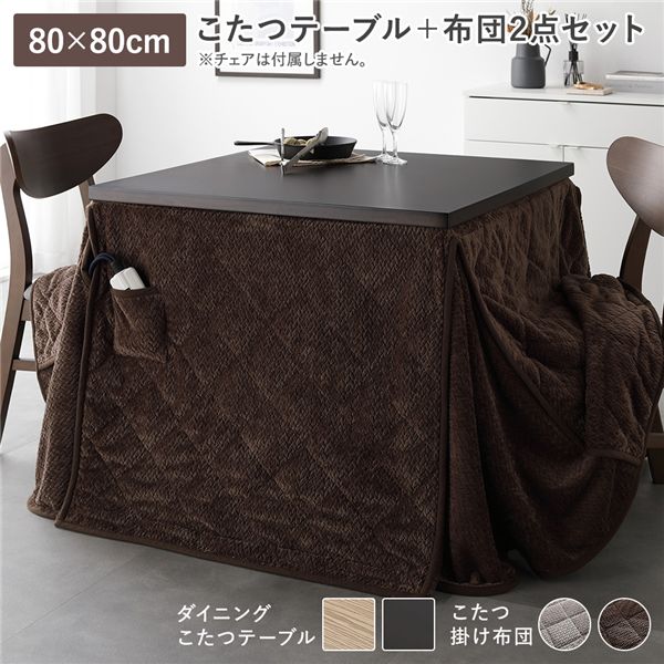 ダイニングこたつ 2点セット こたつテーブル 約80 80cm + こたつ掛布団 ダークブラウン 洗える 代引不可
