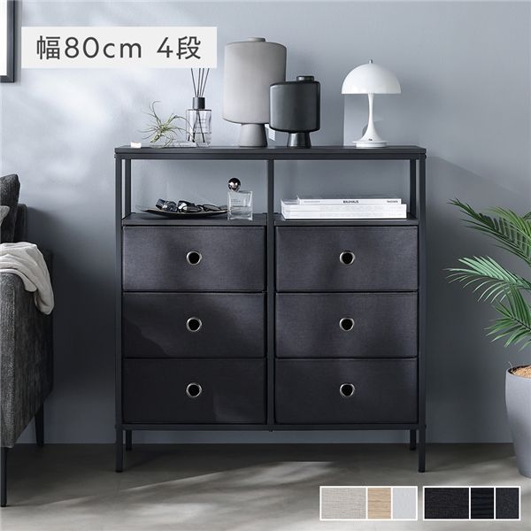ファブリック チェスト 4段 ダーク スチールフレーム 可動棚付 軽量 通気性 アジャスター付 リビング タンス