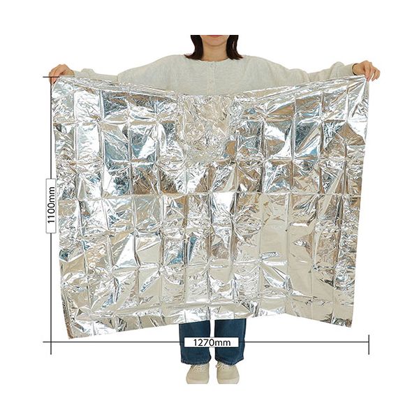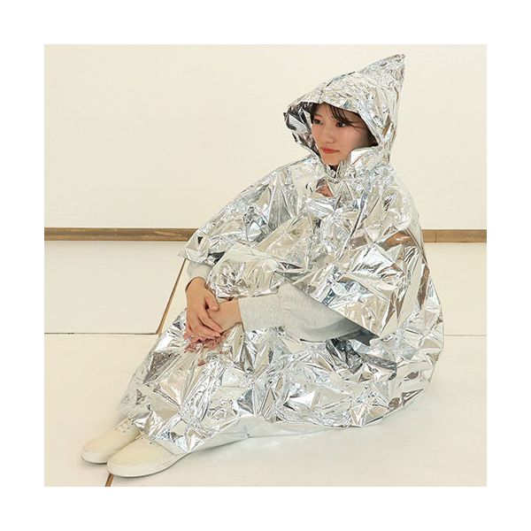 災害時などの簡易防寒具として便利なアルミ素材の防寒ポンチョです。