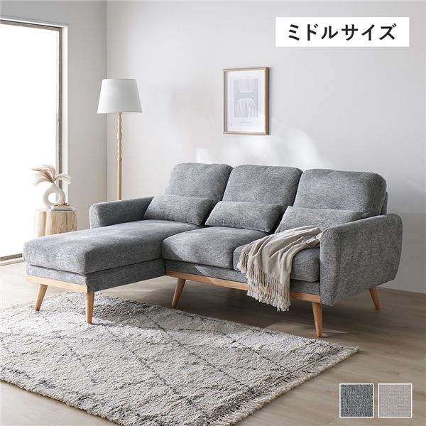 ソファ ミドルサイズ 約幅186cm ハーフカバーリング ミニクッション付き シェーズロング ソファ リビング