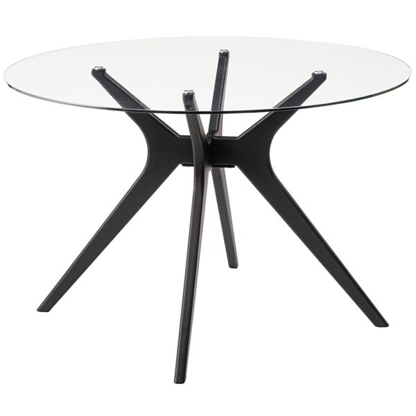 オブジェのように洗練されたデザインが魅力のラウンドガラステーブル。ガラスと天然木それぞれの美しさを引き立て合い、空間の主役として存在感を放ちます。 クリアガラスの天板が、開放感のある上質な空間を演出します。