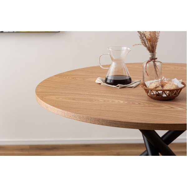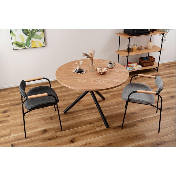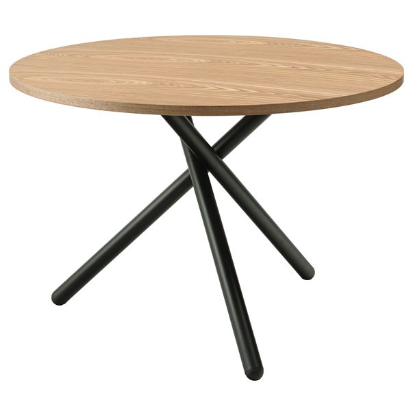 クロスした3本のブラックスチール脚がスタイリッシュなラウンドテーブルシリーズ。太いブラックスチールの脚部が空間を引き締め、シックで上品な印象を与えます。ナチュラルな木目調の天板は温かみがあり、他のインテリアとも相性よくなじみます。