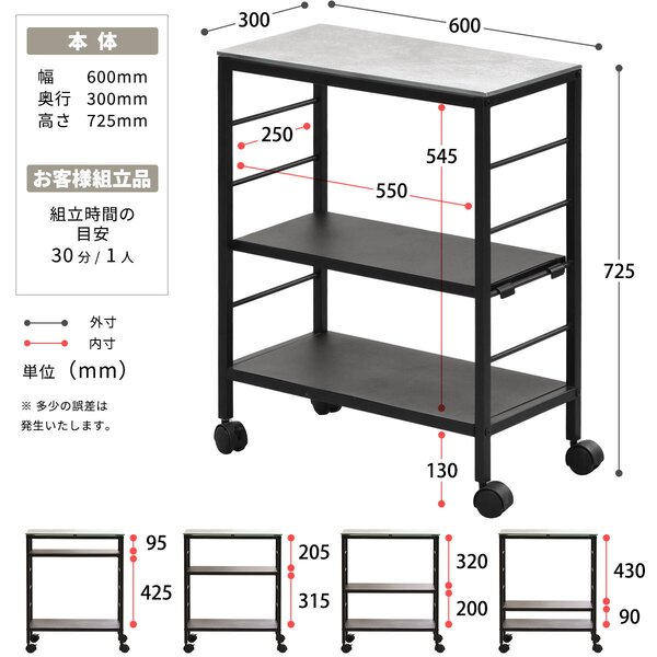 ■素材:【天板】強化ガラス(表面セラミック焼付) 【棚板/底板】スチール板(粉体塗装) 【脚】スチールパイプ(粉体塗装)