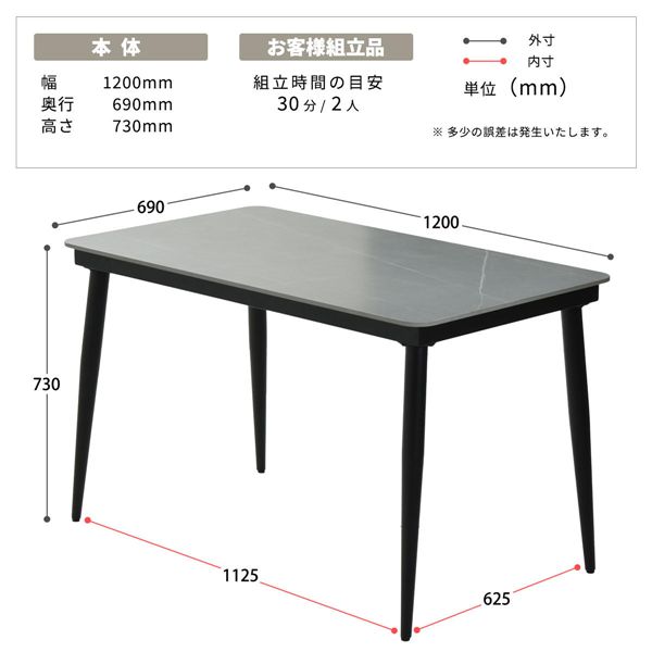 ■素材:【天板】セラミック 【脚】スチールパイプ(粉体塗装)