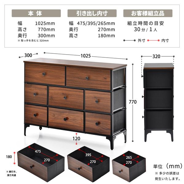 ■素材:【天板】中質繊維板にメラミン貼り 【背板・引き出し後ろ板】中質繊維板にPVC貼り 【フレーム】スチールパイプ(粉体塗装) 【引出し】不織布 ポリエステル(芯材)MDF、紙【取っ手】PP