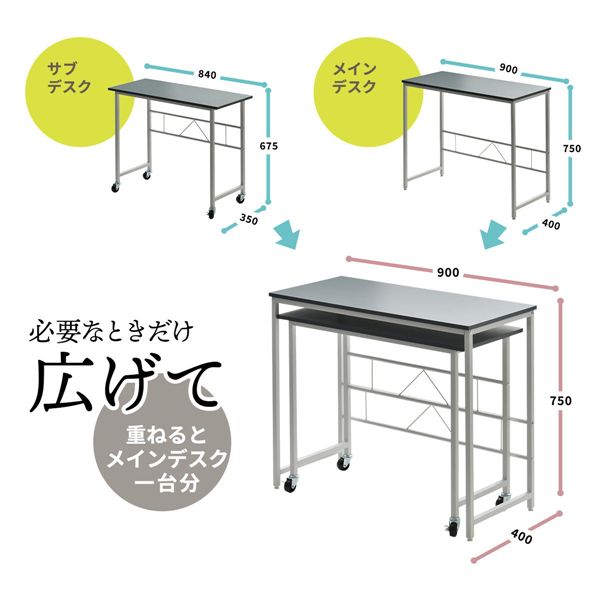 サブデスクにはキャスターがついているのでワゴンの代わりとしても使用できます。
