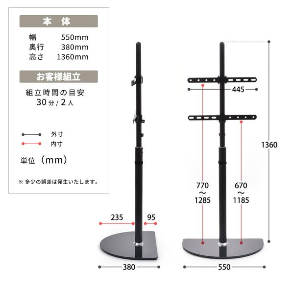 テレビスタンド 約W55 D38 H136cm 組立品 代引不可